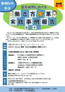 本セミナーでは、さまざまな事例を通じて、医療機関における働き方改革の実践的なヒントや知見を共有し、各医療機関における働きやすい環境づくりのきっかけとしていただければ幸いです。